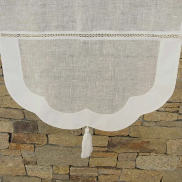 Ravissant brise-bise empli de simplicité et très raffiné grâce à sa forme de cantonnière aux formes arrondies, tout en douceur…